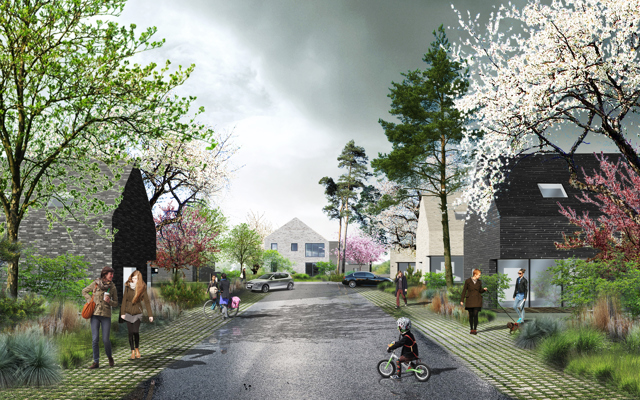 Hovedgrebet i struktureringen af bydelen er et stort fælles landskabsrum, der indrammes af boliger. Boligområderne strækker sig ud i det fælles landskab som tunger. Inde i boligområderne placeres boligerne i og omkring indre grønne byrum. Dette princip skal sikre, at alle boliger ligger tæt på natur uanset placeringen i bystrukturen.