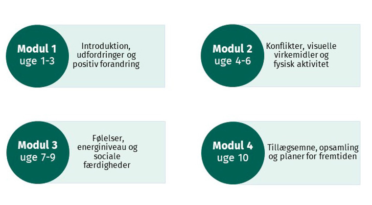 Mellem møderne får du hjemmeopgaver, hvor du skal arbejde med dig selv og dit barn ud fra den viden og de værktøjer, du har fået på møderne.