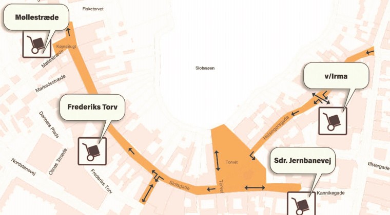 og dobbeltrettet på Torvet og i Frederiksgade.